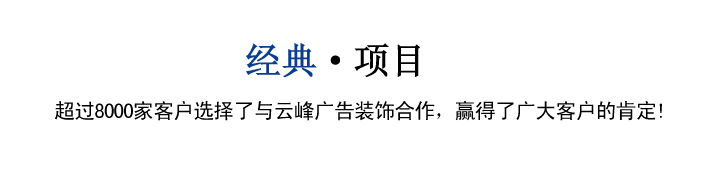 葫蘆島市云峰廣告裝飾有限公司自創立以來,一直致力于廣告牌的設計,噴繪,制作,安裝、LED工程、亮化工程、數碼圖文、圍擋制作安裝、三面翻廣告、大型擎天柱廣告、草坪牌、指示牌、雕刻背景墻、燈箱設計、標識標牌、金屬制品、亞克力字、展臺展柜、取款機隔斷、取款機隔斷等一體化服務,是葫蘆島市噴繪行業大規模實業公司。
